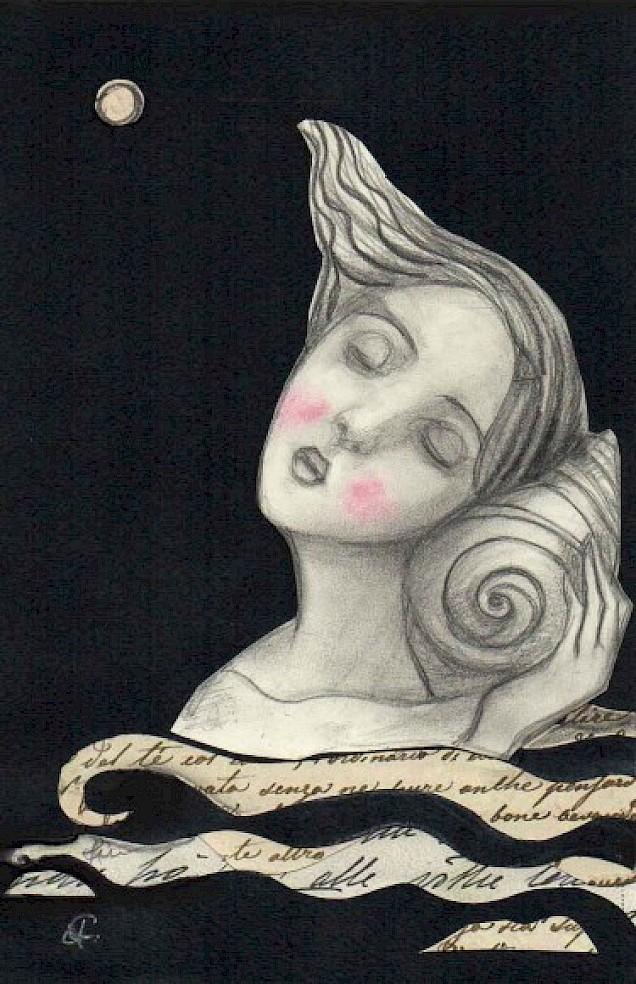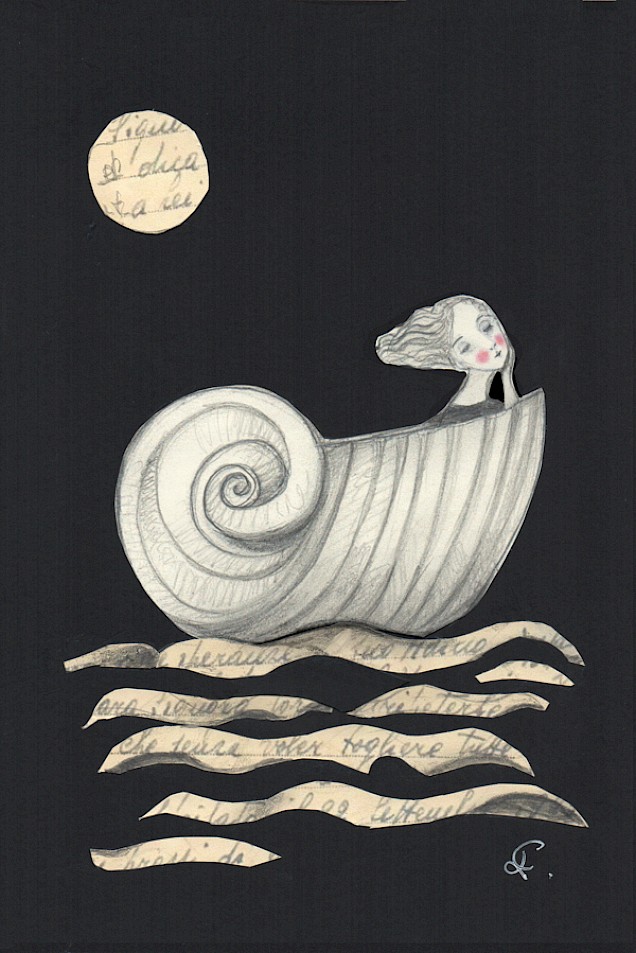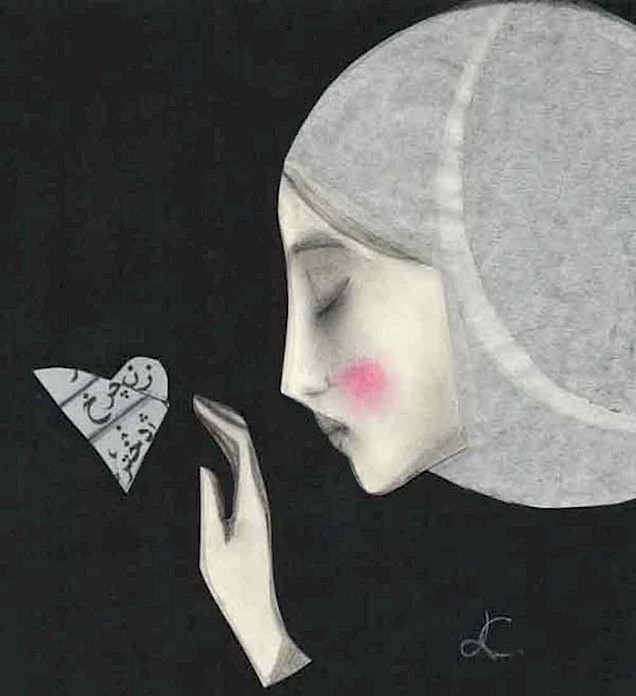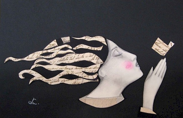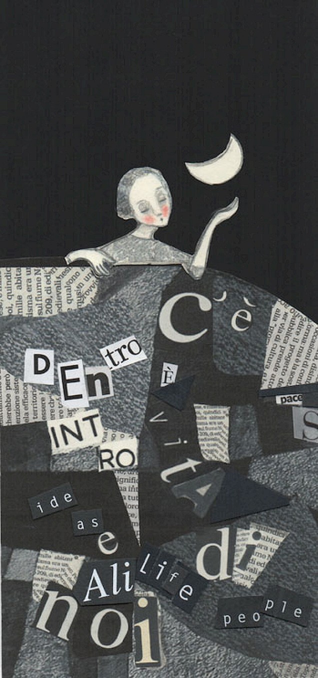 Le fa diventare onde, poi vento o magica luna. E, attraverso le sue composizioni, parla di temi di attualità, lancia messaggi. Figure di donna delicate, quasi oniriche, circondate o create da lettere, popolano composizioni dai titoli evocativi. “Lettere dal vento”, “Lettere dal mare” o, ancora, “Iranian Moon” per toccare temi come l’eco-compatibilità e l’interculturalità, su cui l’artista è da anni impegnata, anche con collaborazioni internazionali