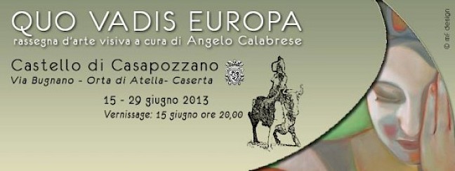 A Orta di Atella, da oggi, al Castello di Casapozzano, partirà la grande rassegna d’arte visiva “Quo vadis Europa” già presentata a “La Rocca” di Umbertide (PG) e al Maschio Angioino di Napoli. L’evento,grazie alla direzione artistica di Giorgio Andrea Trovatello, spinge il Castello di Casapozzano ad affermarsi nel circuito delle grandi mostre. In questo caso, infatti, la mostra si conferma d’alto livello grazie a ben 42 presenze artistiche, stimolate ad interpretare il tema delle prospettive future del nostro continente.